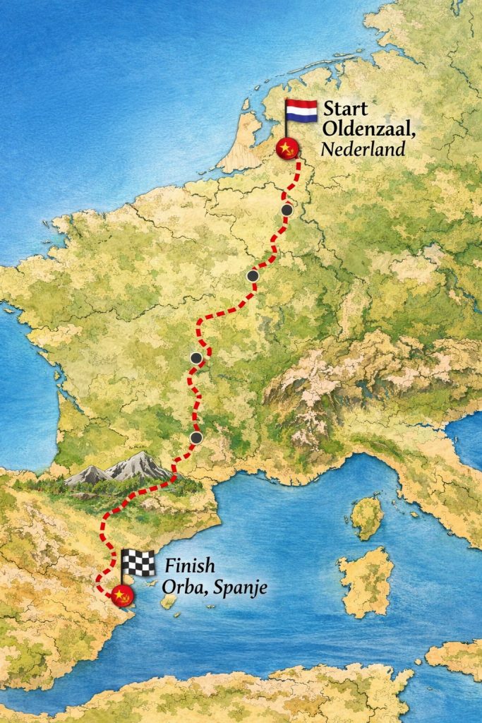 Mijn naam is Ben Keizers en ik wandel 2500 kilometer: van Oldenzaal naar Orba (een klein Spaans dorpje in de buurt van Denia).