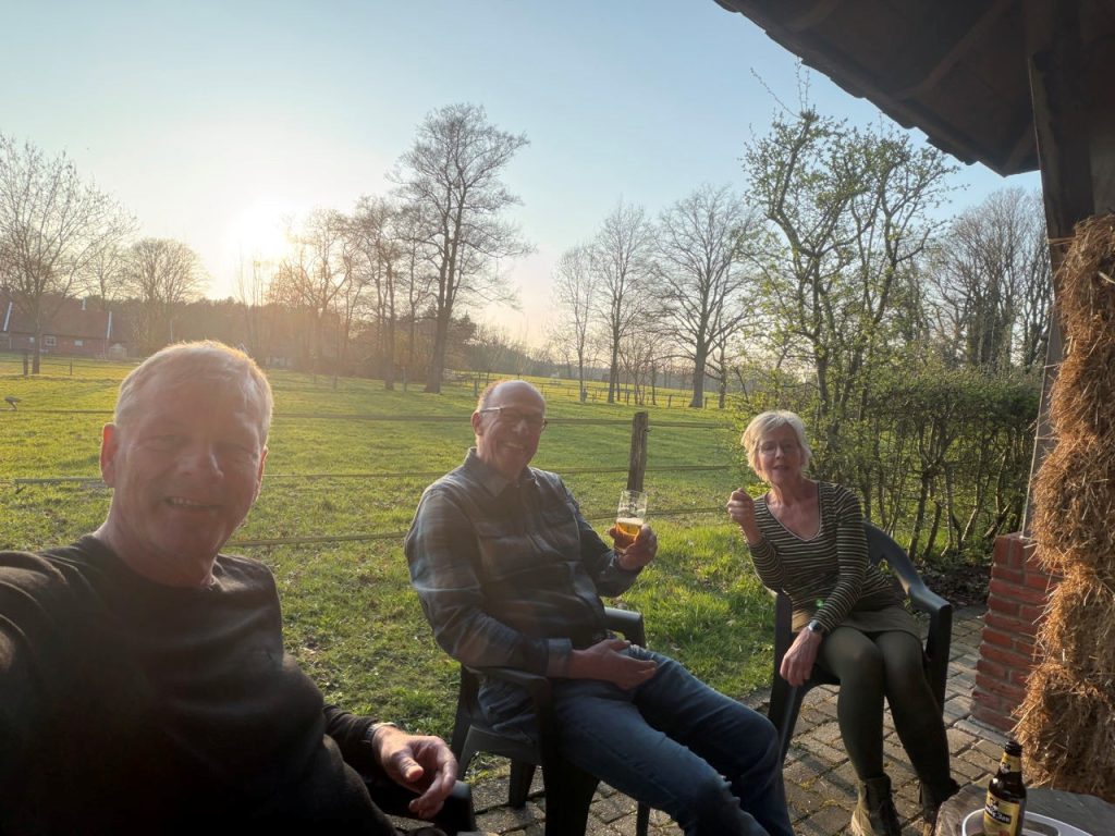 De familie waar ik slaap is een neef van Ellen Bos. Een prachtige boerderij in het buitengebied van Haaksbergen. En superaardig ontvangen. Met dit weer is een biertje wel op zijn plek zeiden ze. Ik heb niet tegengestribbeld. Heerlijk. De eerste 33,4 kilometers zitten erop. Ik mag nog een eind.